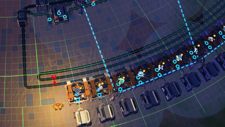 A sushi conveyor belt mall for the very early game. You only need the blue research to build this mall. It consists of 4 parts that can be built one after the other. The first 2 parts only fit in fixed positions near the pole. The 3rd part must be in line at the bottom left. The gaps in the conveyor belts must then be closed. The resource inputs are marked. Simply feed the material there.