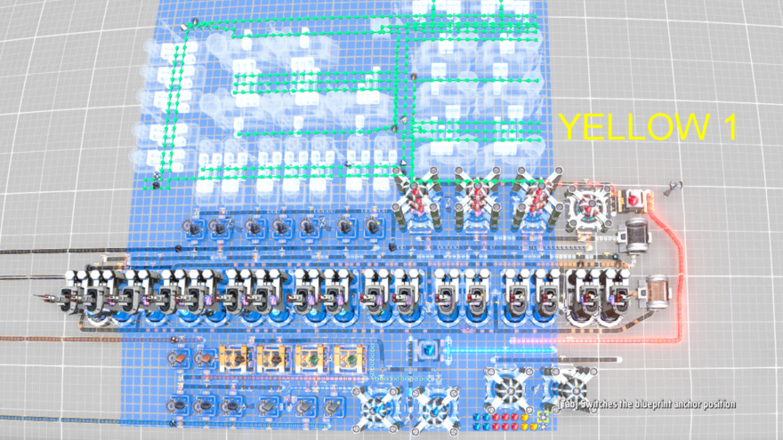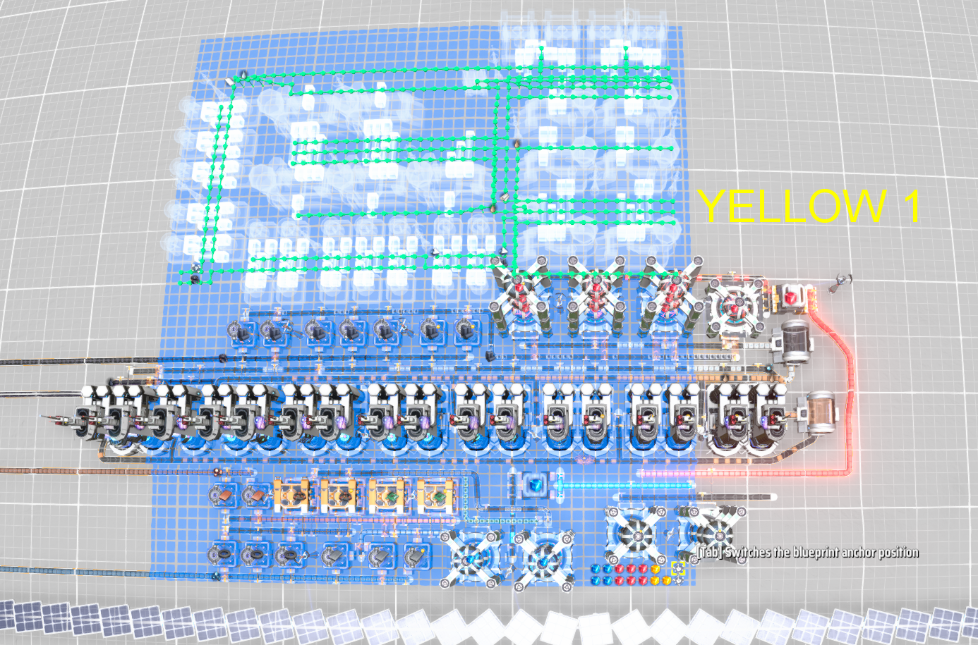 Blue 100, Red 100 & Yellow 100 are all linked to each other. Use the small "science dots" to align all prints. Se picture with final result of all 3 factories buildt.