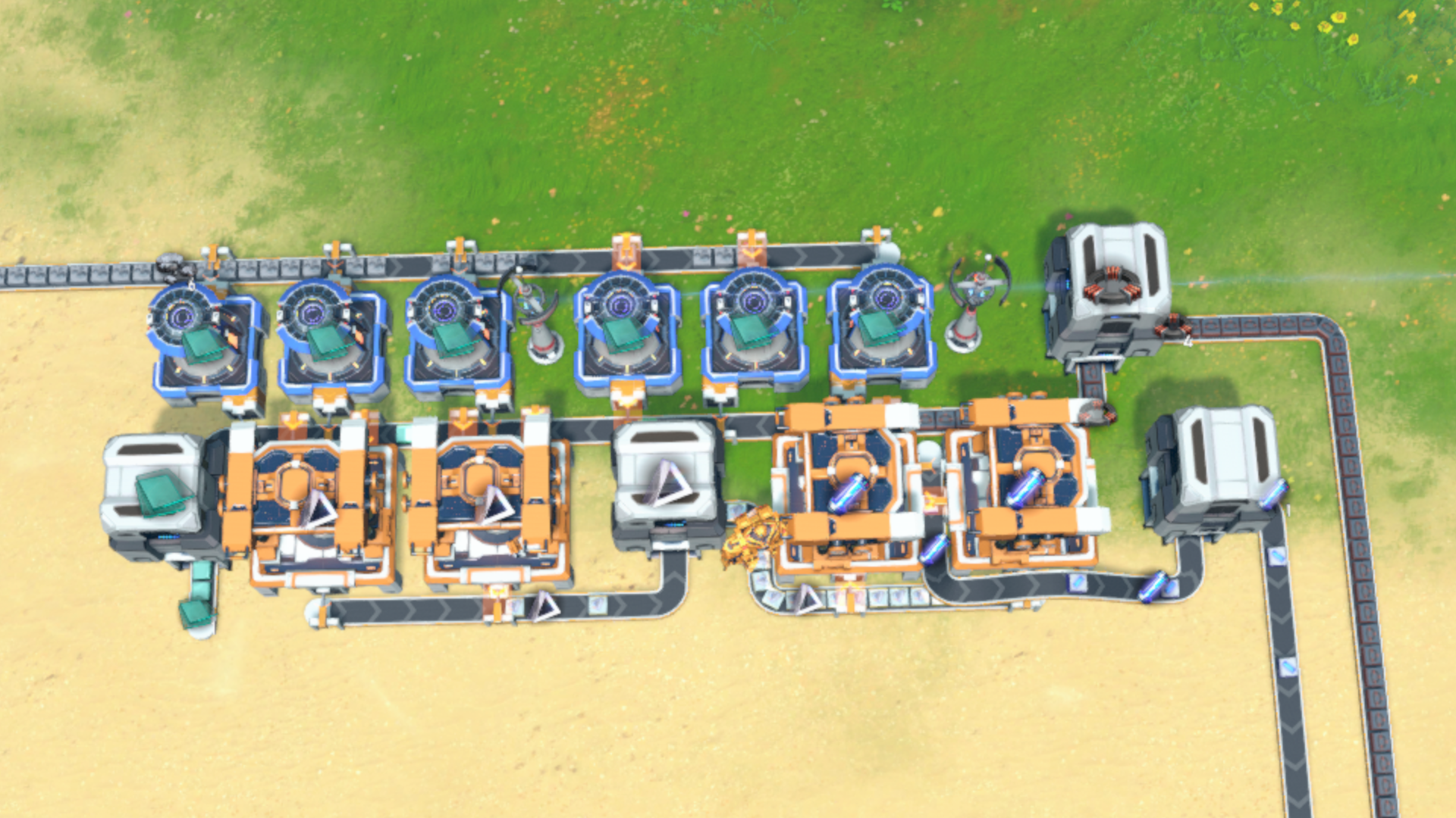 Input: 6 Stone per second (1 full yellow belt) Input: 4 Magnetic Coils per second (or just put them in the Storage) Output: 3 Glass > 2 Prisms > 1 Plasma Exciter per second Output: 1 Glass every 2 seconds (Not a lot, but enough for a starter hub). Will produce Plasma Exciters and only store Prisms & Glass if not needed