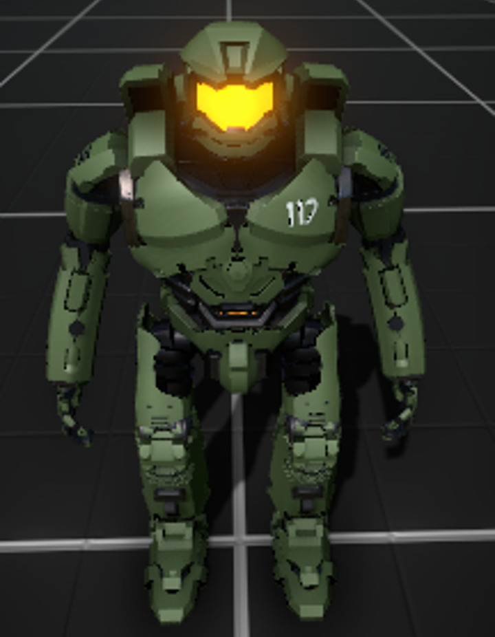 Master Chief from Halo. The default frame is used minus the head, hands, and feet. I will also make a different version of him with the energy sword included eventually.