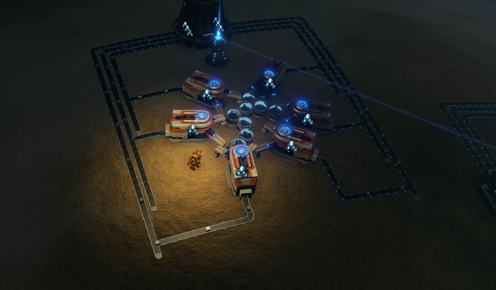 Template to help set up miners more quickly. Drop these templates around each patch of resources, then come back, add miners, connect to belts, connect to power, and set up the logistics tower.