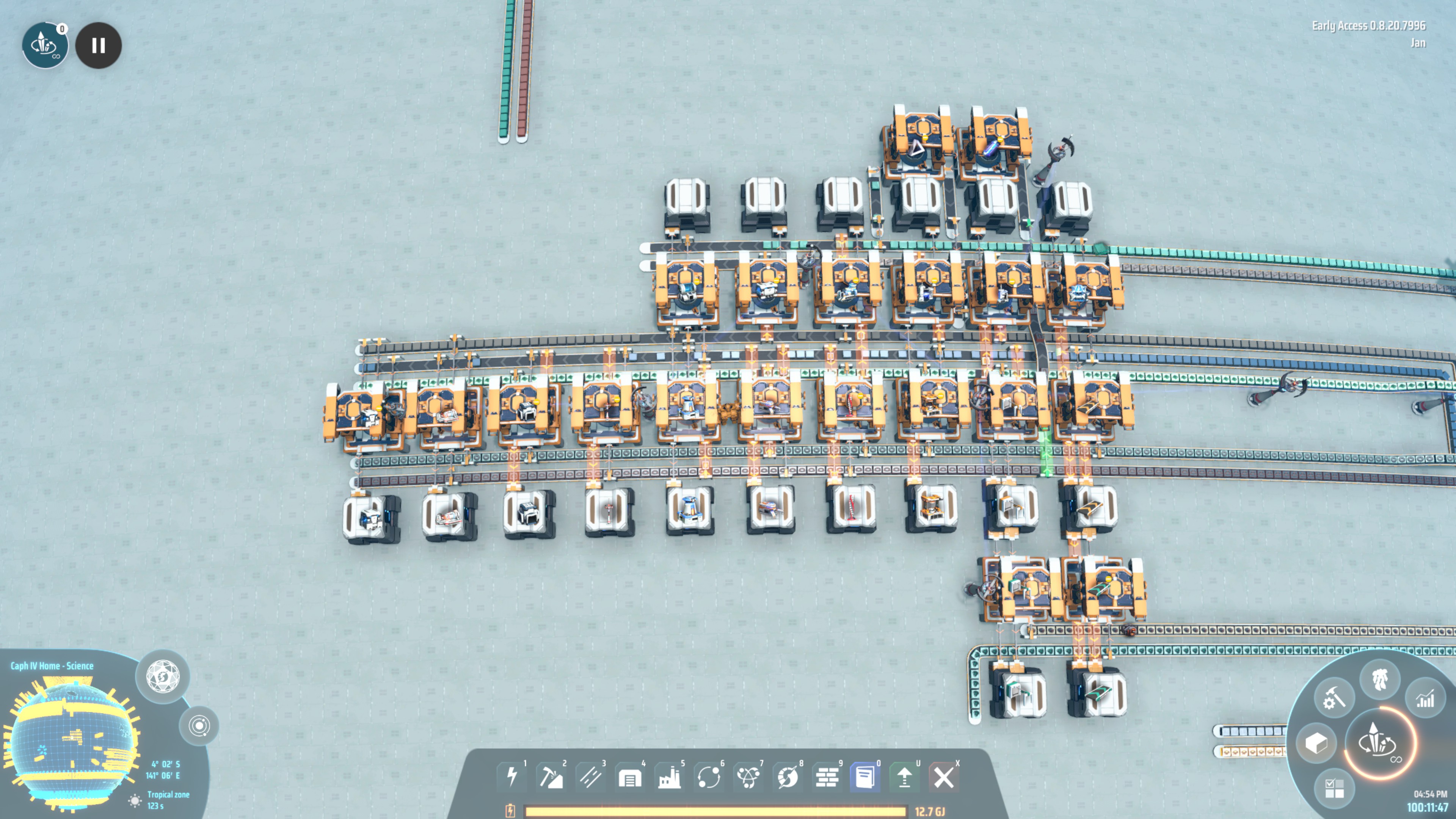 Concept: This modular mall can be upgraded during the course of the game and produces everything a Mecha needs to build stuff! The first parts are <60 entities and can be used early on. The coolest thing ever: The mall can be upgraded later on with logistic towers for inputs and outputs! Each tower is also supplied with warpers. The entire mall fits from west-east or north-south in the equator zone. Start the first row around the equator line (use the complete blueprint to estimate the final size). The first parts are done with MK1 belts and sorters. I recommend to upgrade all parts when possible. Note: It is important not to build anything else within the mall area even though there is space. Otherwise the tower connection blueprint will not fit later on. Before you place the tower connection blueprint (part 9) all old belt connections need to go. But keep the belts with memos (align points)!