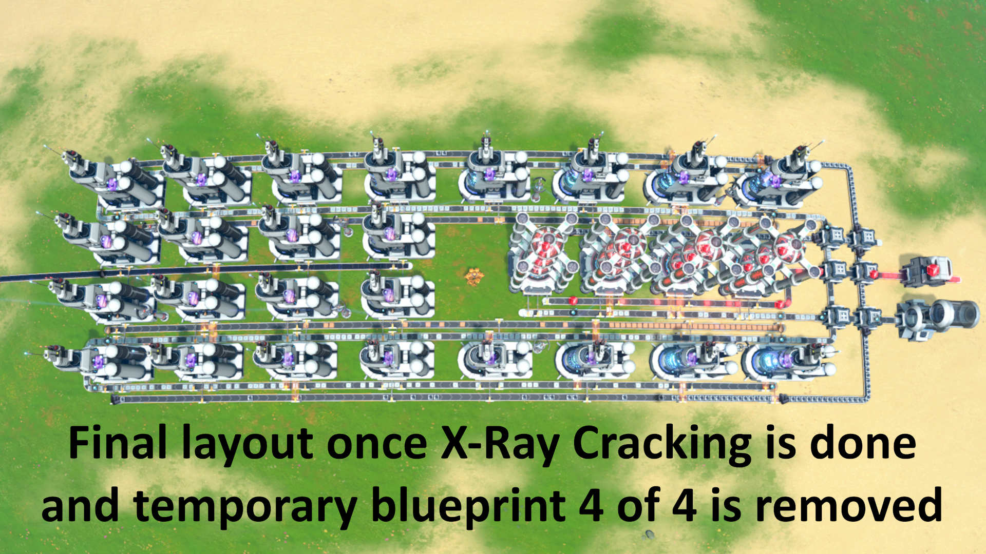 This temporary blueprints adjusts the build to complete X-Ray Cracking technology research. Once this blueprint is placed, manually add at least 800 Energetic Graphite in the box or belt in on the side (either the top or the bottom).