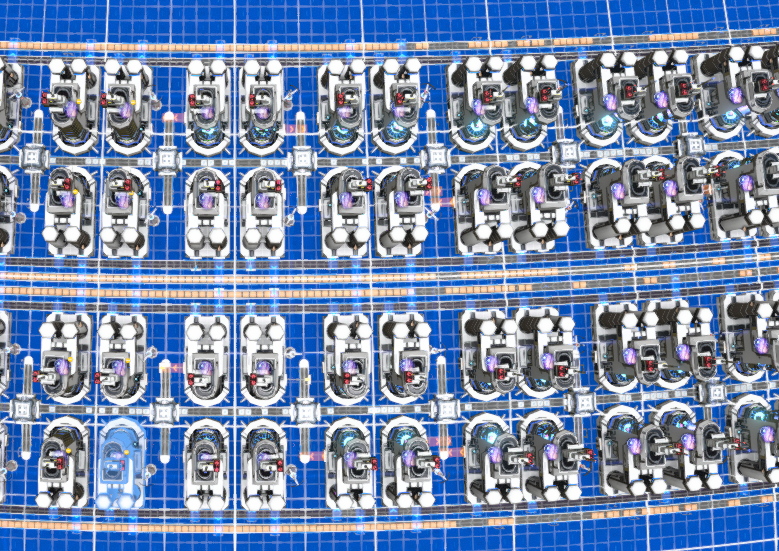 This is part of the blueprint book "Oil refining - tileable". The book consists of 2 blueprints: - Base ILS with connectors - Tileable 8 refineries blueprint (this) You can add up to 30 blocks to one ILS resulting in - 4 blue belts refined oil - 2 blue belts hydrogen
