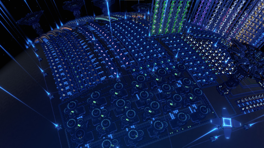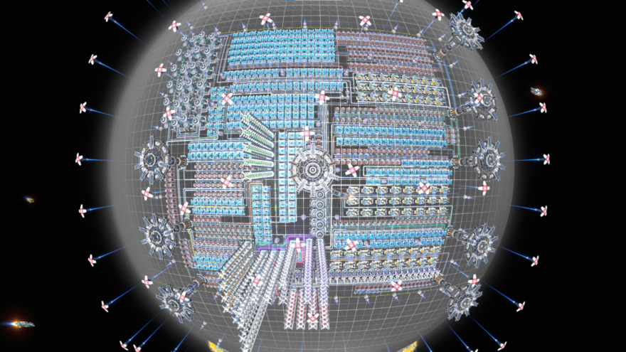 - A single planet fits 5 of these boxes, turning it into 30 science/s. - Each box fits exactly within the central fault lines (but the blueprint contains 1 item outside fault lines to help with snapping). - Logistic stations will request warpers locally. Make sure they are supplied on the planet. - It can take about one hour to stabilize at 6 science/s. - Fill each logistics station with vessels and drones. - Each box uses 2-3gw of power. 15gw on the planet should cover 5 builds easily (I use this Polar power ring). - Plane filters (Tier 2 smelters) are required.