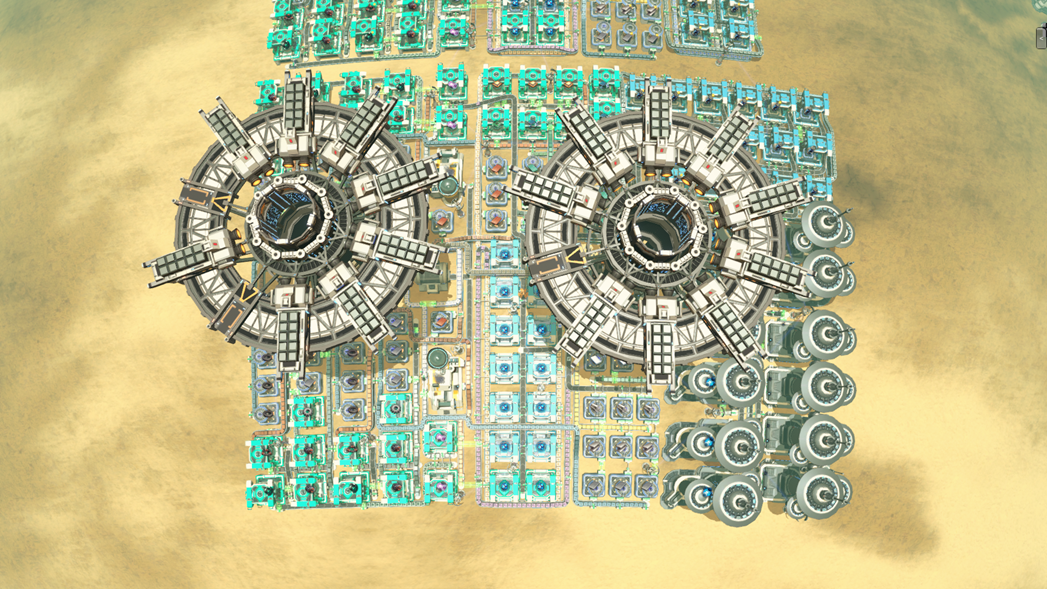 - 粒子容器: 新旧公式原料皆无冲突独立运输. 且两公式产出速度相同. 所以两公式可以任意比例同时或独立存在. 由于物流塔格子全满, 可燃冰或氢气的格子要空出一个给单极磁石. 出口有个设置好过滤器的专用分拣器, 易于辨认.