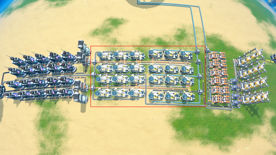 Total Production per second: 10 Refined Oil, 5 Hydrogen, 12 Plastic, 12 Organic Crystals, 9 Titanium Crystals, & 4 Diamonds. All of these products are consumed to create 2 Yellow Structure Matrices per second.