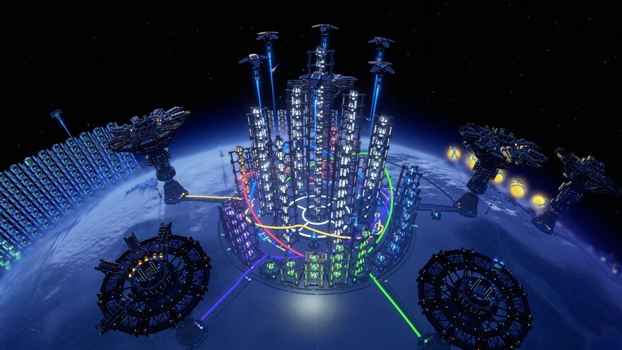 INPUT:Red&Yellow&Purple&Green matrix and their material and antimatter. All input conveyor belt has been marked. PS: Best to supply power after all of them are built to avoid blocking. PS2: There is a bug existed in the pole‘s sorter when pasting the blueprint, only several angle can paste successfully. Please rotate 360 degrees to find the right paste angle.