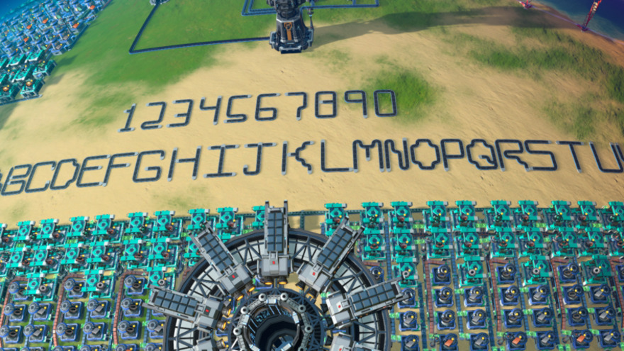 Alpha Numeric for labeling objects, fill the conveyer with cubes and you can see them in map view. This way you kind of have the same "font" everywhere, since you can take individual numbers and letters and use them.