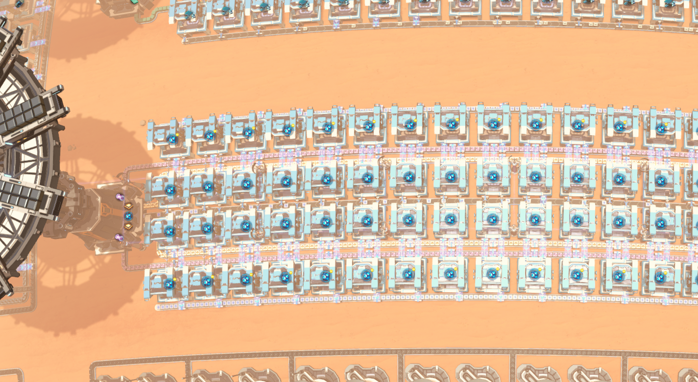 Annihilation constraint sphere production. If you dont need this many assemblers (160), there is a small space between the two "units" of assemblers marking the middle of the line for easy deletion of the last 80.