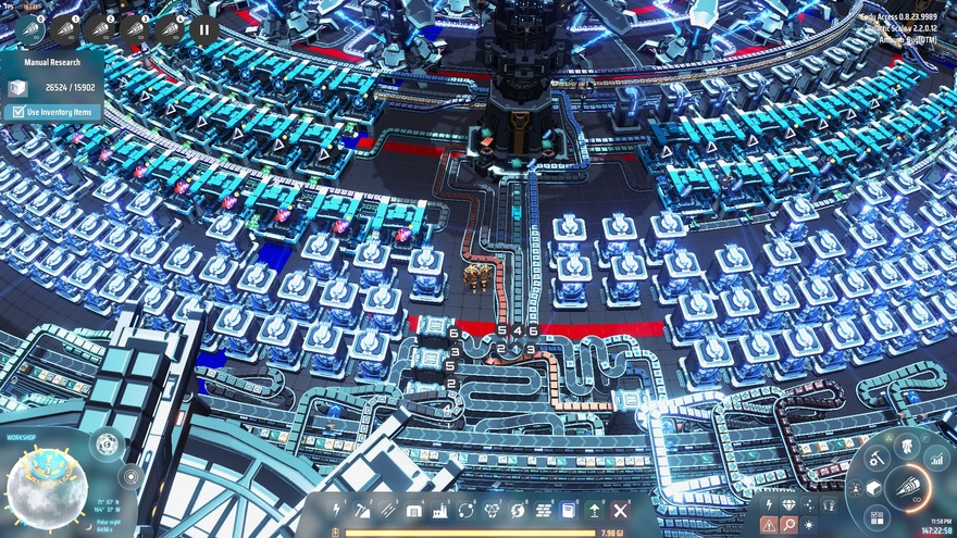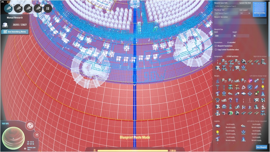 This builds on Hendekabelt, moving the structure to the North Pole of your chosen planet. (Should work at South pole too, but that's not been tested.) It makes every building at assembler speeds, with some extra speed for drones and receivers. It runs off exchanger power but also has some free slots on the outside ring of ILS if you want to power it some other way. (Check the ILS next to the Particle Colldier assembler.) It makes its own warpers from green cubes on-site, as well as some of the less common components (Constraint Spheres, Plasma Exciters, and Photon Combiners) if your logistics network doesn't include those. If it does, it will demand those instead.