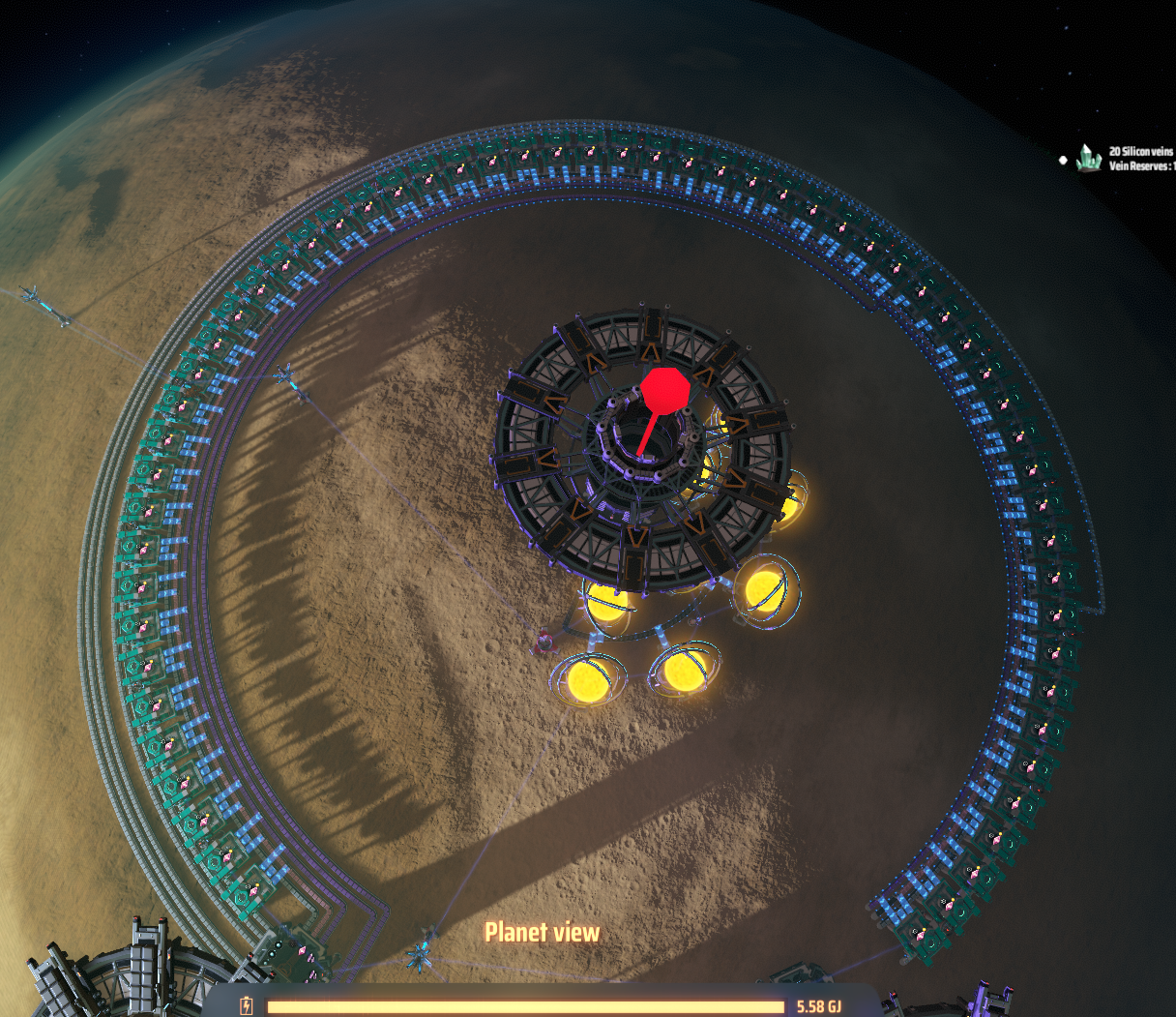 It's one tower, 11 belts, half of the belt output (15 cry/sec), 6 belts of Hydrogen, 3 belts of grating crystals, 1 belt of graphene, etc.. Could have all the additional belts on the second level or higher, but decided against it.