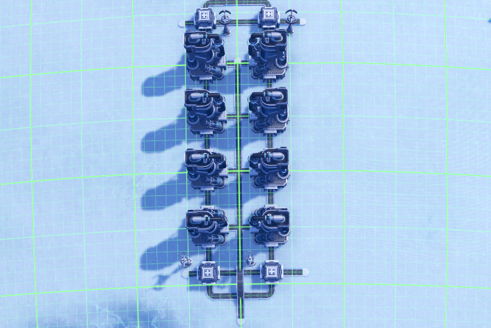 Tileable deuterium farm design by Zanthra, as found on Falk's Steam guide. Wait for the previous belts to be built before placing next tile.