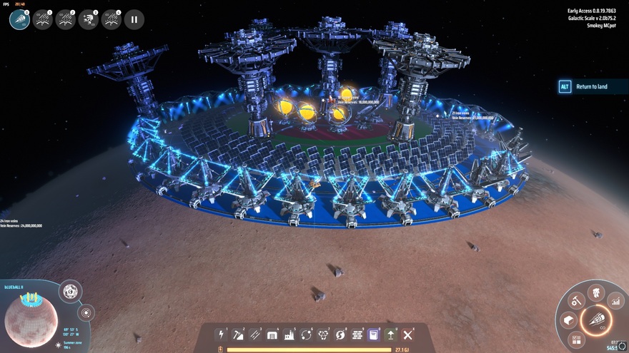 The Mighty Combo Hub: about 1.4GW of local and external power available, in order of fewest resources squandred: your Solar Panel (and ANY locally generated) power will always be put to use first. Exta power needs up to 630MW will be provided remotely by your Full Accumulators sent from your already set up Power Banks, and an extra 720MW of power is available through Antimatter Fuel Rods being used by your Artificial Suns, and most importantly: IN THAT ORDER. Extra bonus: the first 630MW of locally generated power will always be sucked up by the Energy Exchangers of the Discharge Bank, even during periods of lower consumption (build more processing, you slacker), lowering the demand on your remote Charge Banks, thus lowering the overall use of Space Warpers. Once you hit 630MW of locally sourced power, consider adding another discharge bank (or extending an existing one) over adding more local power generation. Ideally the capacity of the chargers in your discharge banks always exceeds the amount of locally generated power. And yes, you CAN use these banks to recycle the energy released by burning off that pesky excess Hydrogen from Graphene production, Plasma Refining or X-Ray Cracking. 101 Thermal Power Plants per Mark III belt full of Hydrogen will do the trick just fine :D Enjoy your new free power!