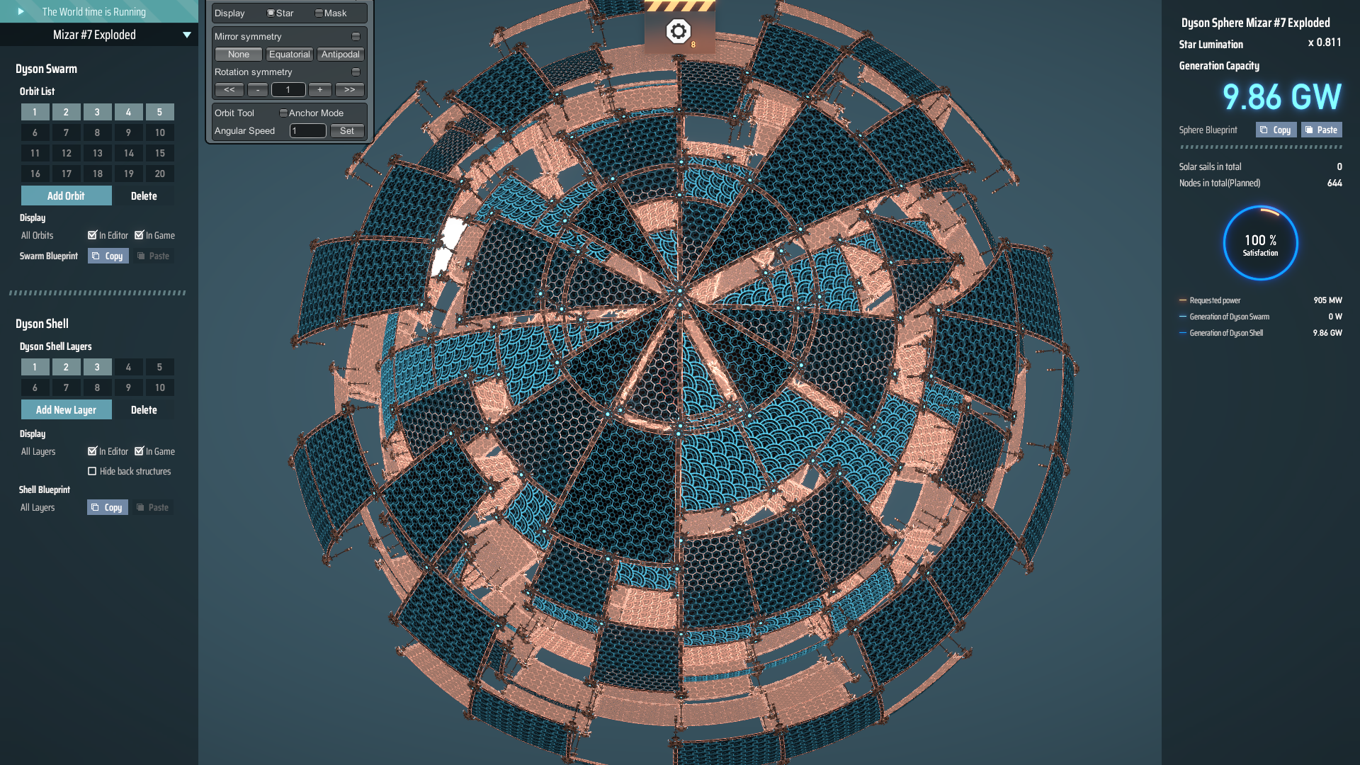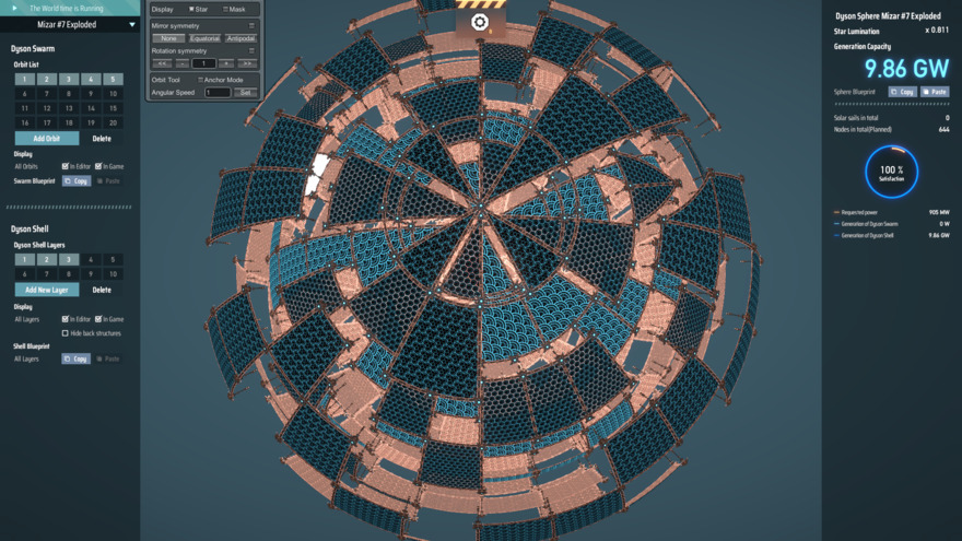 The classic square sphere, but exploded manual-style over three layers. Created using starfi5h's orbit modifier and sphere creator tools, before the game's own sphere creator update. This was to ensure the orbits all move together when created; it should still work vanilla.
