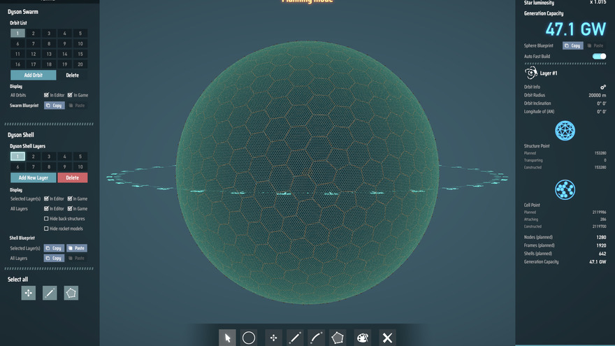 Single layer Bp. I don't think this is the most cost effective for this number of nodes, but it has more hexagons than the 42 face football and I like the look more. Stats for 20k: 153280SP 2119986CP 47.1 GW