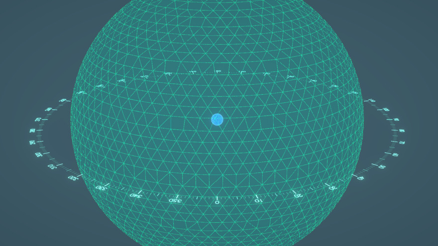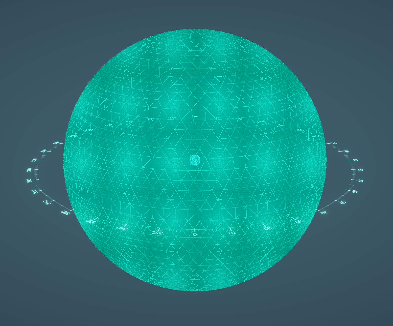 A sphere design containing 2570 nodes which maintains 30 degree radial symmetry. Each node's position was hand-calculated and placed without a grid. This is the densest design that I could come up with without sacrificing said symmetry. The only reason to use this design over denser asymmetric designs would be for aesthetic purposes.