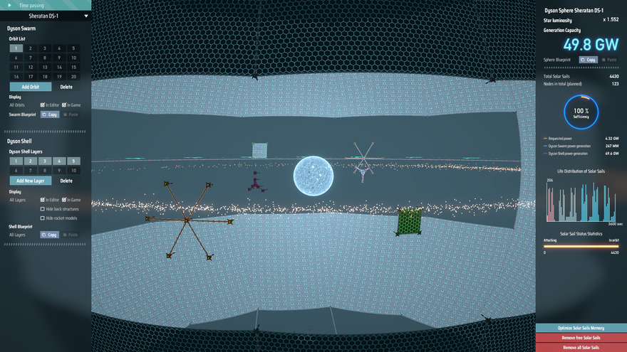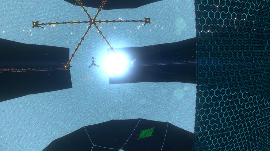 Hard to capture in picture this sphere shimmers from the color chosen and inner surface behind that. This outer layer combined with docking ring and several orbiting superstations of three different types inside give life to your system! This sphere gives moderate power while allowing good views of the celestial object from the planets and many flight paths.