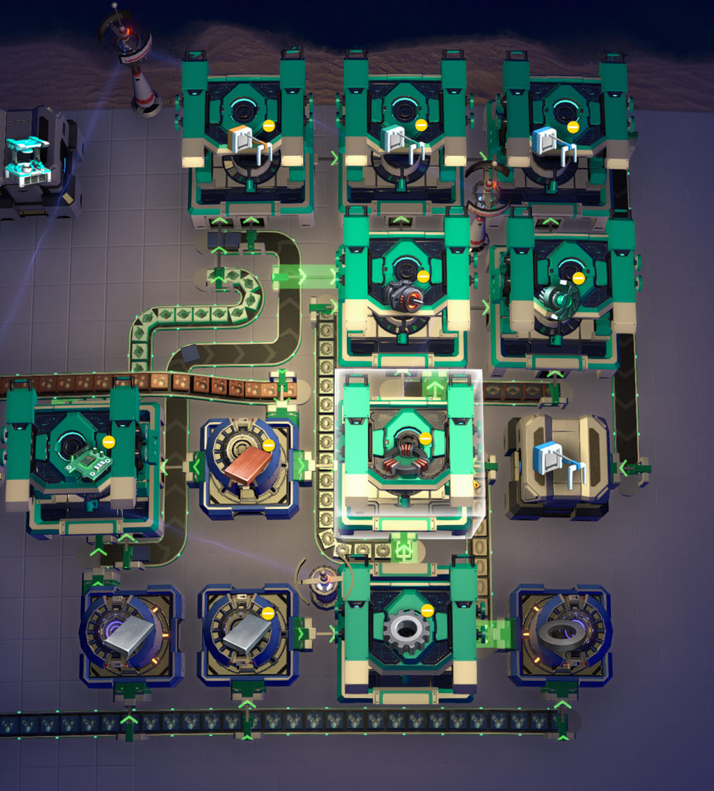 Takes an iron ore input and a copper ore input and fills a box of Mk.III sorters at a mediocre pace.