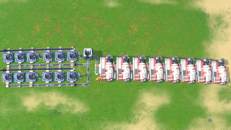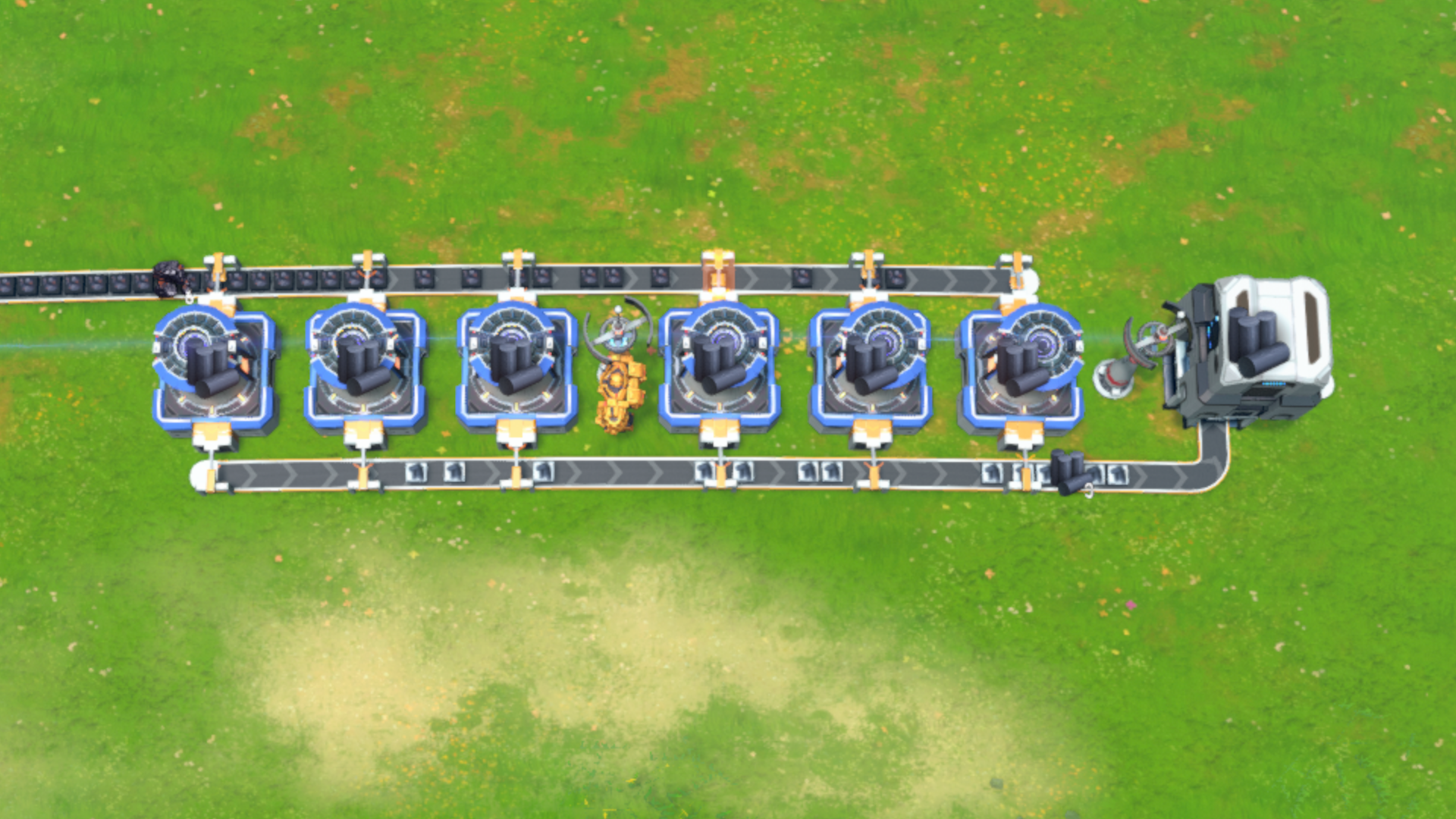 Basic Energetic Graphite Smelting for simple power in the early game. Input: 6 Coal per second (1 full yellow belt). Output: 3 Energetic Graphite per second (Half a yellow belt). It takes 2 of these Energetic Graphite Smelting blueprints (6 per second) to run a full Energetic Graphite Power Strip blueprint.