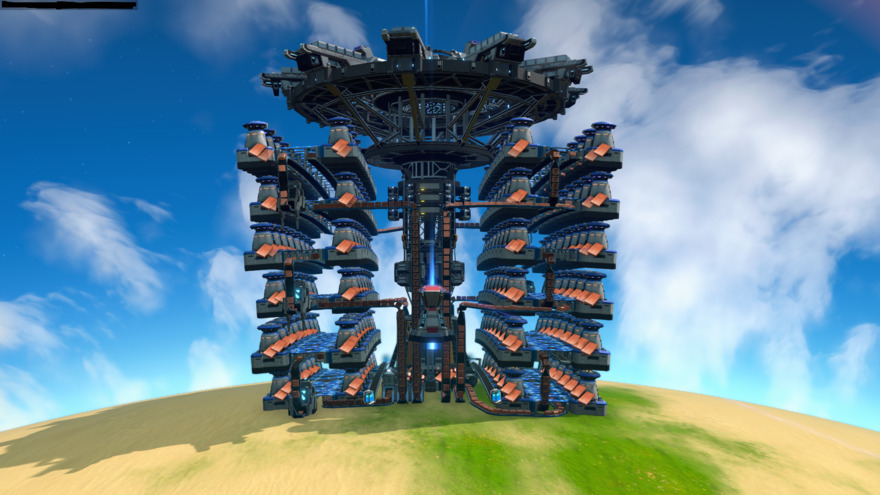 此藍圖藉由藍圖編輯器製作,以立體堆疊熔爐使單元更加緊湊。除了電力塔,全部在星際物流的碰撞範圍內。