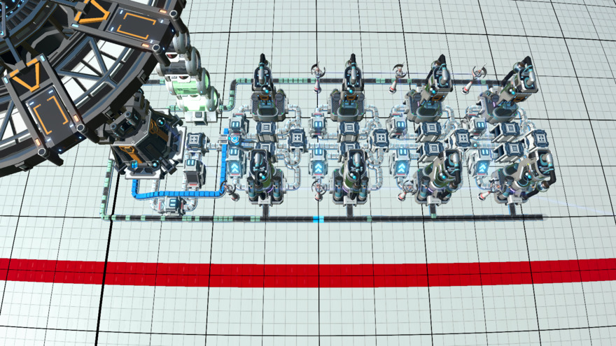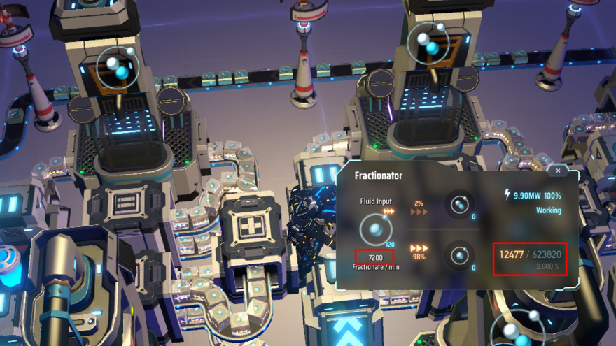Схема гибкая.Если вы уже в поздней игре и из станции выезжают сразу стаки по 4,то удалите часть стакующую конвеер до 4.Ненужно напыление? удалите. Хотите мастабировать в длинну? Переместите баки назад или удалите. Отзеркальте сторону со штабелёрами и врубите прямо в сплиттер.Схема удвоит вместимость и модульной схемой продлите настолько,на сколько позволит ваш приток Водорода или вместимость синей ленты конвеера.Если делаете очень длинную линию,каждые 8 фракционаторов на Дэйтериевый конвеер ставьте Пиллер. Потому что он начинает забиваться.
