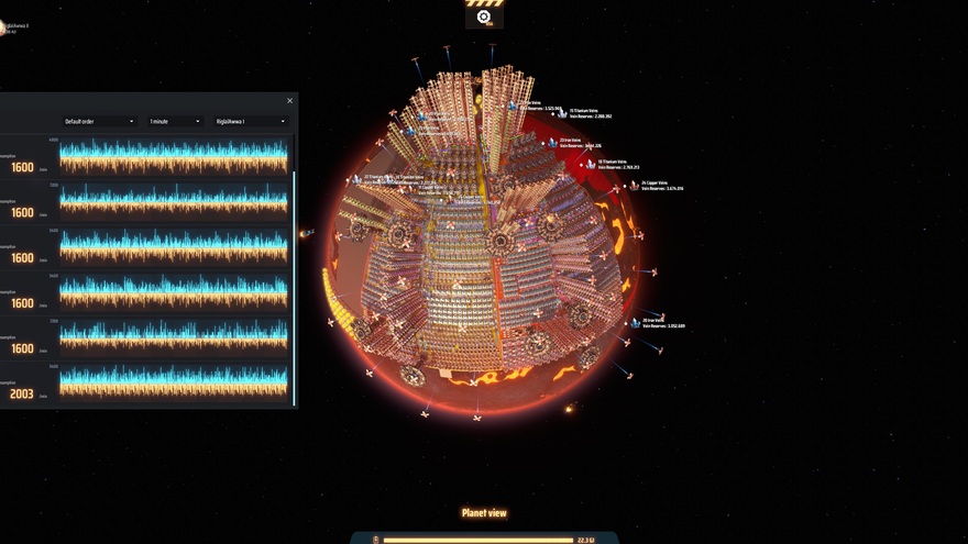 I can't expand it to 16k White/min on a single planet, because there would not be enough power, but 15k/min should be possible with this setup on a planet.
