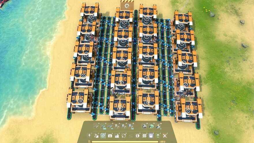 This is a blueprint for assembler items that take 3 input items. The middle three belts pull items from the Logistics Station and the outer two belts return the items. The assemblers are also staggered for ease of putting these next to each-other which allows the assemblers to use one belt for returns when you line them next to each other (final screenshot shows this in action). The only problem is you must put down the sorters to put the items onto the belt for the second placed blueprint.
