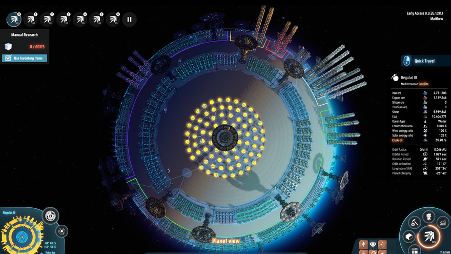 Produces 30/s white science and hashes them, from raw resources (no unipole magnets). Fits on one hemisphere.