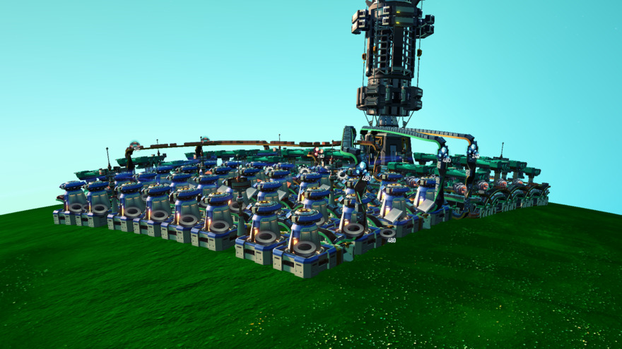 Decided to make this for my third playthrough of the game because I hate these things a lot. 32x32 in size. Not proliferated. Requests 1200 iron ore & 240 copper ore per second. Takes about 45 seconds to make the first motor; and 1 minute 45 seconds to get to a steady 120/min. 887 facilities in total. Spaghetti galore. Who doesn't love spaghetti, though? Takes up about 23 MWs of power. Min. Load of drones is set to 100%, please fix if you so choose.