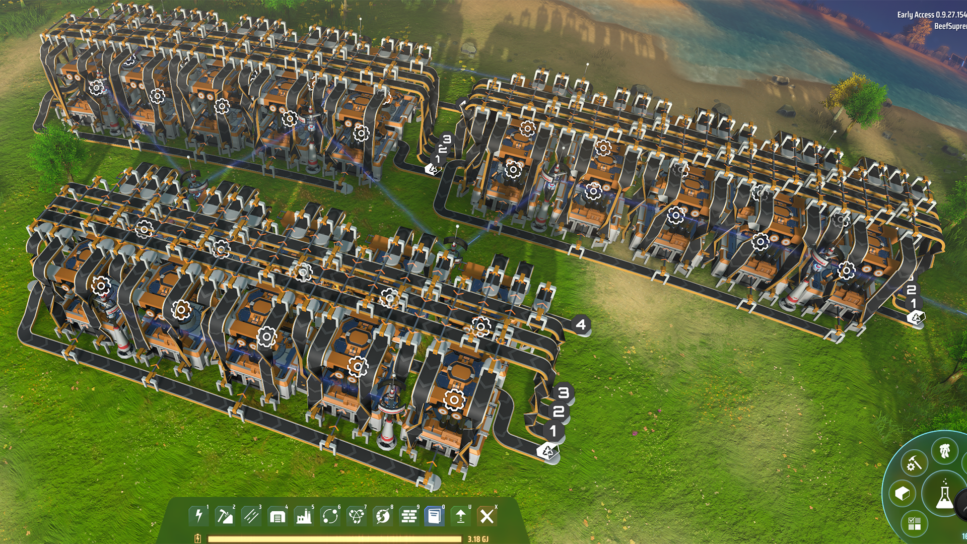 10 Compact tileable assemblers 4 in 1 out. Modify to 3 in 1 out by removing belt 4 and corresponding.