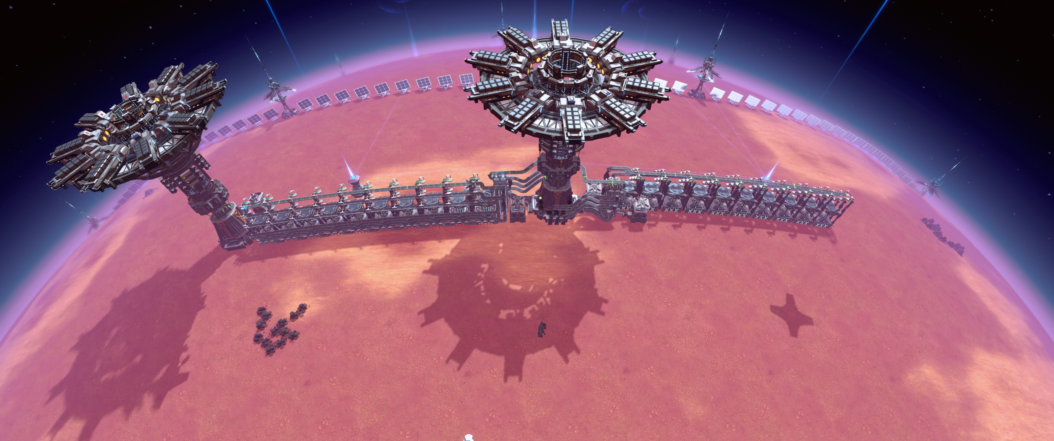 Can make Miniature Particle Collider, Ray Receiver, Advanced Mining Machine, or Plasma Turret. Very tight packing and small footprint. Uses Logistics distributor to demand Space Warpers and Proliferator Mk.III. Also uses Logistics distributor to send final product.