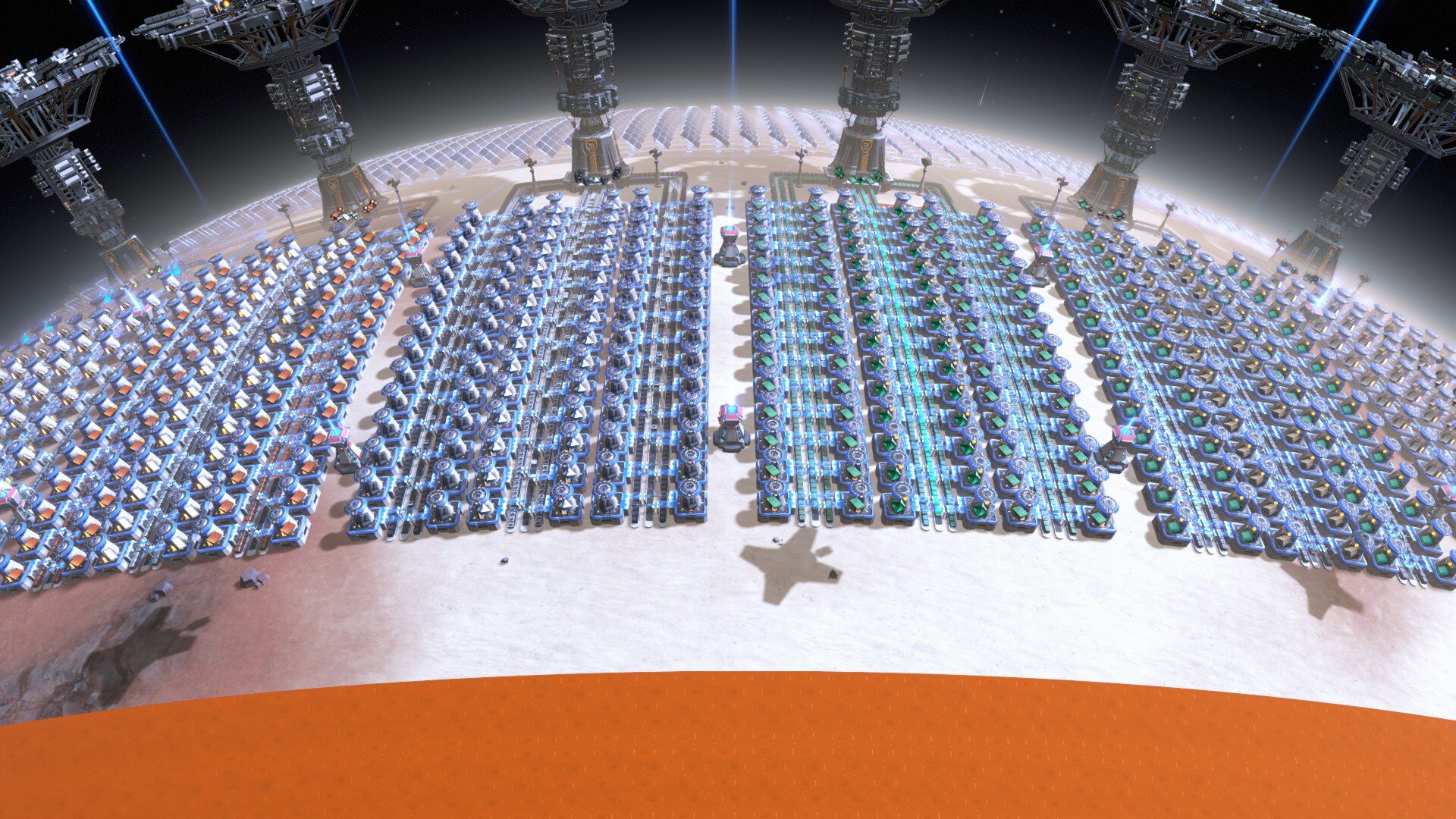 This is a smelting block with 516 Arc Smelters. All smeltable products in the game are produced in this block. 6 ILS towers 66 Titanium Alloy Smelters: 1,320/min 30 Steel Smelters: 600/min 30 Iron Ingot Smelters: 1,800/min 30 Magnet Smelters: 1,200/min 60 Copper Ingot Smelters: 1,800/min 60 High-Purity Silicon Smelters: 1,800/min 30 Crystal Silicon Smelters: 900/min 30 Titanium Ingot Smelters: 900/min 30 Stone Brick Smelters: 1,800/min 60 Glass Smelters: 1,800/min 60 Energetic Graphite Smelters: 1,800/min 30 Diamond Smelters: 900/min ILS towers configured with warpers and proliferation Satellite power distribution Tier 3 sorters, belts and smelters Build a mall to supply your construction materials. Flatten the building area with foundation as needed prior to placing this blueprint. Recommended Mall: https://www.dysonsphereblueprints.com/blueprints/factory-assembler-smelter-planet-mall Other variations of this blueprint: https://www.dysonsphereblueprints.com/blueprints/factory-90-smelter-template https://www.dysonsphereblueprints.com/blueprints/factory-5844-smelter-planet-all-smeltable-products