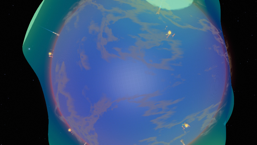 8 shield to fully cover the planet against relay landing with no shield on the center pole