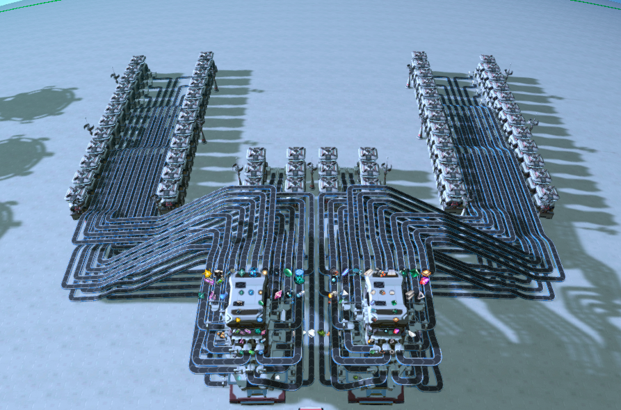 Buiildable with Red Science Techs for vertical contrustion (except Satellite-Substation for highest level power for top Box) Mass Construction 900-Tile All Distributors are set to provide. Connections are made to be fitting easily.