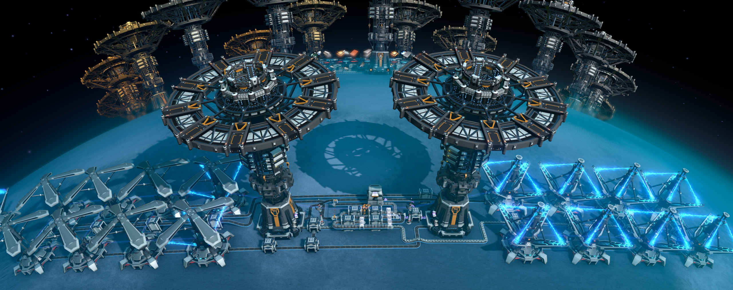 Dischargers are disabled if there is excess power. Hopefully fixed the problem occurring with lack of empty accumulators. Put about 300-400 of any item concrete into the chest after construction or switch the splitter priority (and disable chest filter) to the item your choice. Refer to my reddit post for more details. https://www.reddit.com/r/Dyson_Sphere_Program/comments/1b2glbh/ultimate_energy_exchanger_balancer_reupload/