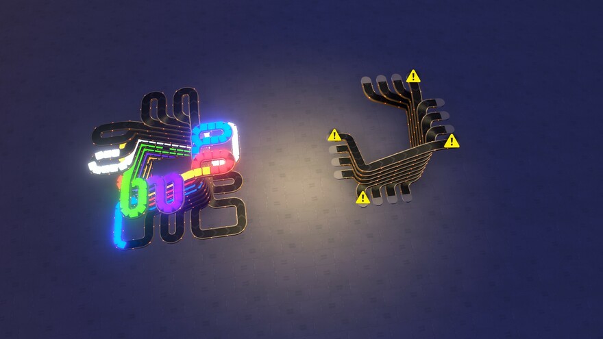A logistics tower placeholder with a 16 belt goods elevator, up/down to 4 high for use over buildings. Only use the 12 main belts if you plan on replacing it with a tower later! * belts exit on the opposite sides to entry.