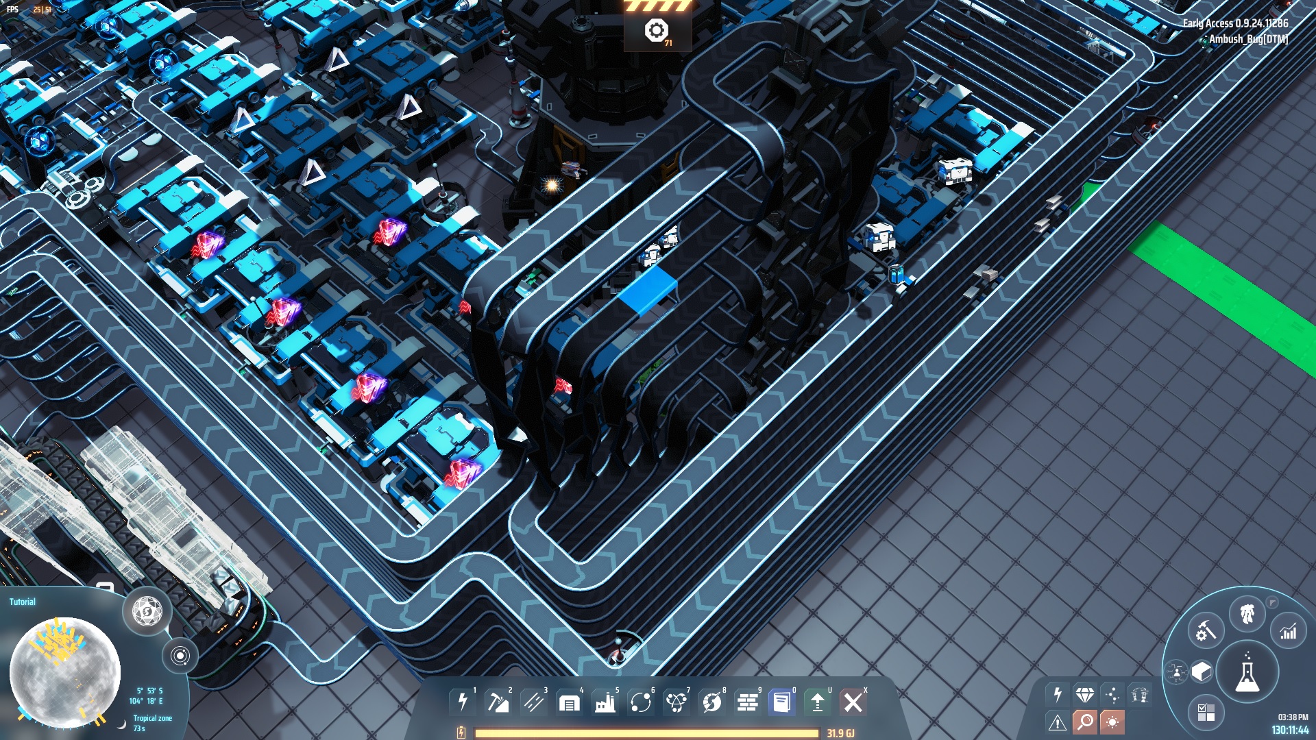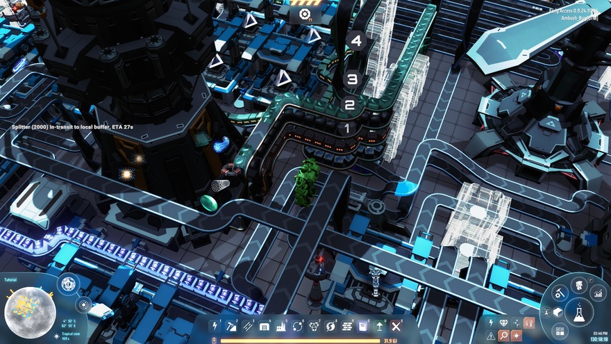 SPLITTERS GO IN LAST. Empty them from your inventory, build everything else, then place the splitters. Do it that way and it shouldn't jam.Black-Start Capable: Plunk it down and forget about it. It'll request everything it needs and start up on its own, with no need to hook it up to existing power supplies or prime any generators by hand. Ideal for sprinkling around your cluster to cut down on shipping times, especially if you're playing a big-cluster Galactic Scale game and laying down prints like crazy.
