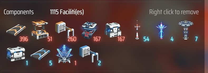 The ordering of the buildings is determined by their components, I've tried to share as many chests as possible. Use your logistics inventory slots to order or remove buildings.