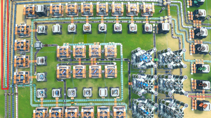 This blueprint contains the belts for steel and glass positioned on the left of the hub. Check the picture for correct positioning.-