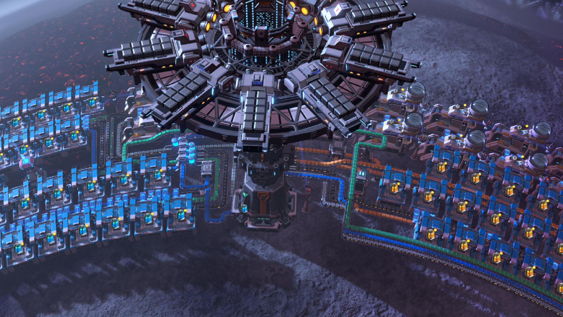 Fully proliferated mark 3 proliferators. Produces slightly above 1,200 per minute and self sprays starting from rare ore. Compact (but not exhaustively so - my first try so could be better) to fit four around the third ring of a planet.