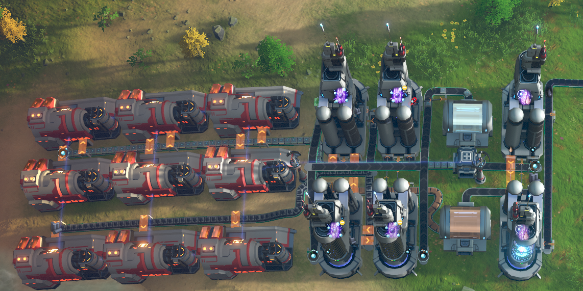 Generates 19.44 MW peak power from crude oil Takes a bit to spin up. If you already have one blueprint that's been running for a while, you can speed up startup process of new blueprint by transferring a few hundred excess H2 + Refined oil from the tanks of previous blueprints. WIP, may need some tweaks, feedback welcome.