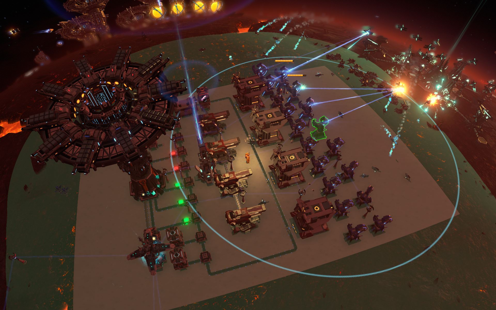 Place blueprint where the laser turrets are just within the outer range of the Dark Fog ground base. As Dark Fog drones circle the perimeter, they will be fired upon and other units will be drawn into your defenses. I chose a location that put the high-intensity laser just within my own laser's range so it's destroyed as it's built on that side.