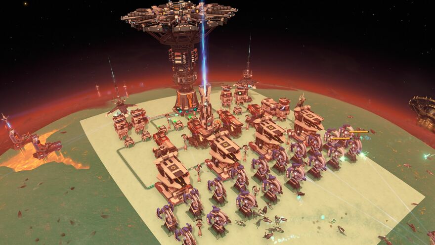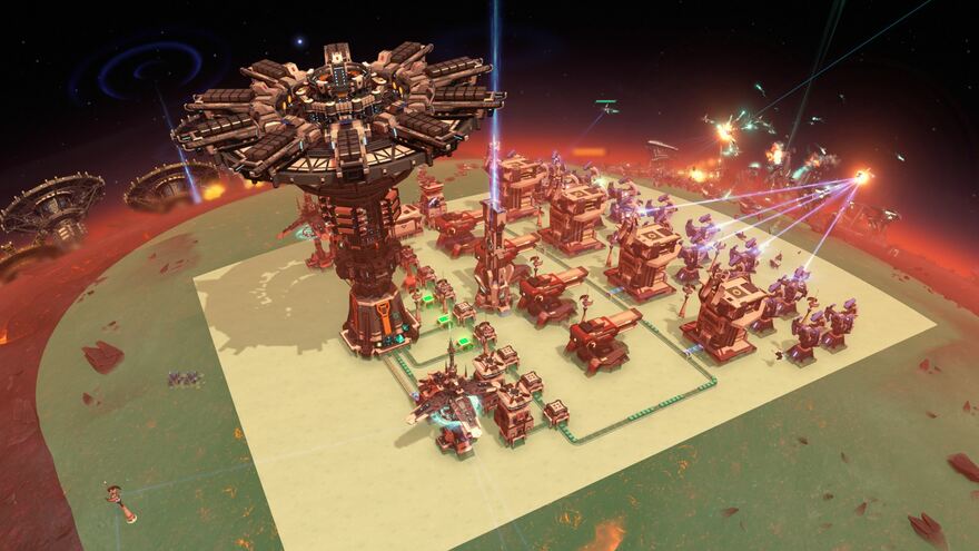Be sure that missiles are installed somewhere on the planet. These are the last line of defense if your laser turret line is broken. The Signal Towers in the back line are placed such that any Dark Fog coming past them will be fired upon.