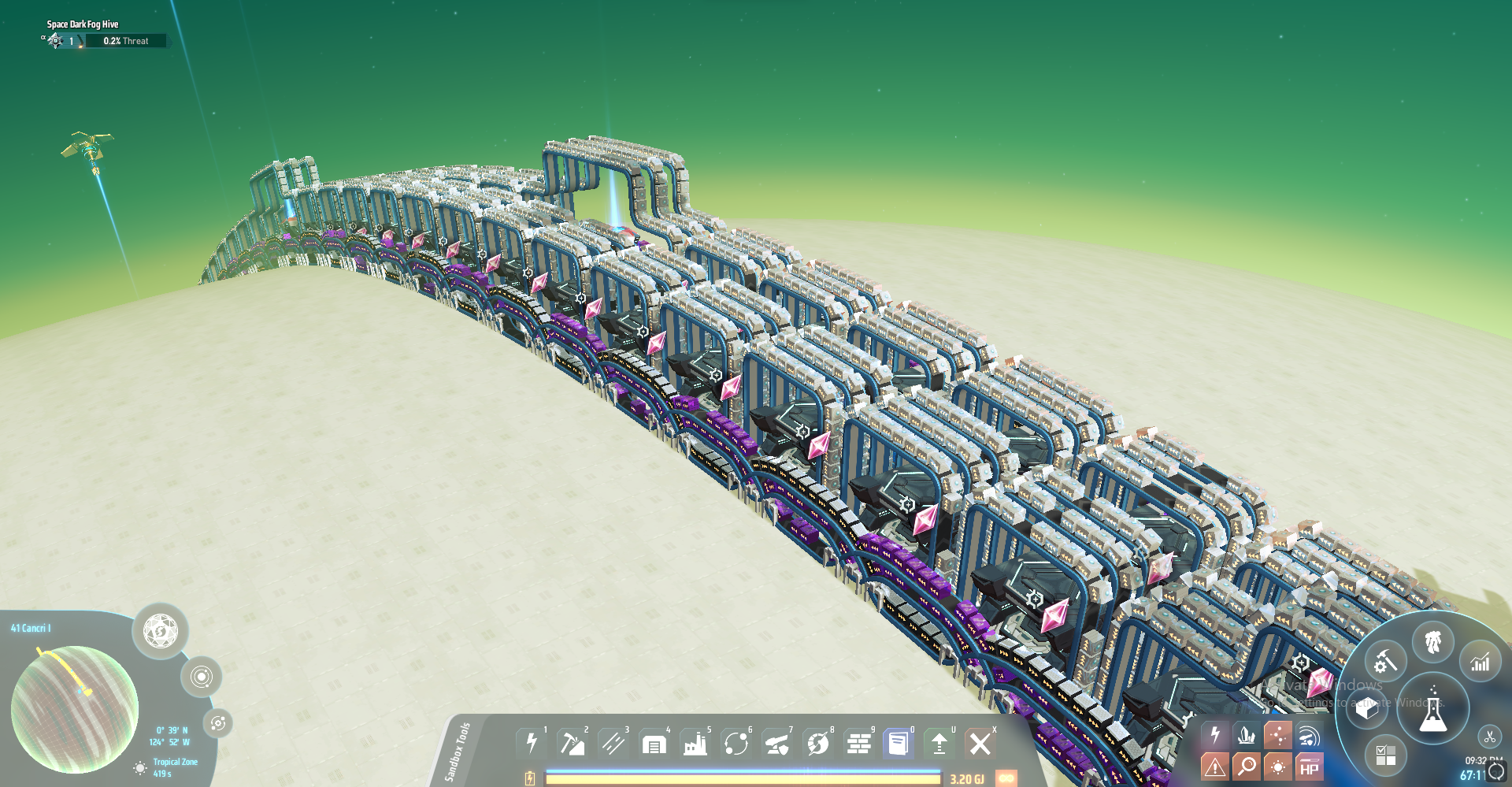 - No splitters or Tesla towers used, to optimize for UPS in late game