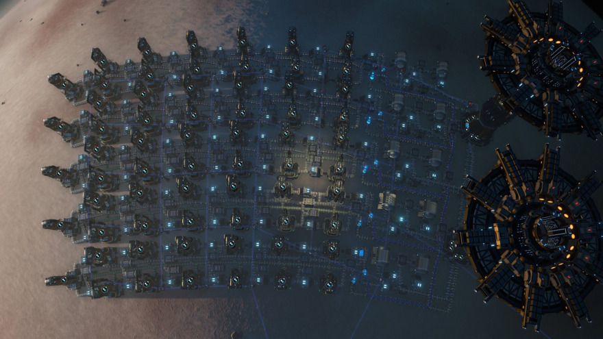How to use: - Place somewhere in the Outer Equator (second strip from the planet equator) - Wait until at least 2000 Hydrogen is buffered in each Storage Tank - Enable output on all Storage Tanks (hint: prepare another tank aside and then copy its settings) - Wait until all belts are saturated (nothing moves) - Add Deuterium in the settings of both Interstellar Logistics Stations. - Enjoy 9 000 Deuterium flowing in each minute!