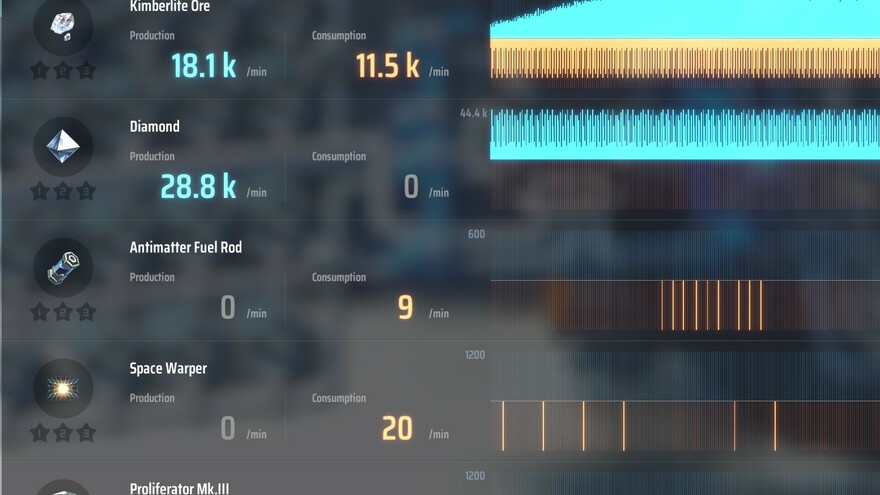 This is a slightly modified blueprint of Yosef1313's Titanium Ingot 28.8k/pm blueprint. MK3 proliferators are fed externally by MK1 depot and logistic bots. Kimberlite ore needs to be fed locally for best output.