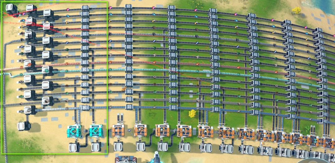 This is Early Main Bus Mall that build every early structure that not require titanium and silicon. Use Conveyor Belt MK.I and Assembler MK.I, can mass upgrade to higher level later when have enough MK.II or MK.III item. Also include Dark Fog Loot Sorter in the Storage part, can use belt or manual put in those unsort item, left over item that not use in main bus will go to the last storage. Main Bus mall easy to modify and expend to build more thing. Common structure or item that always need to use by Icarus can add the Logistics Distributor on top of it Storage.