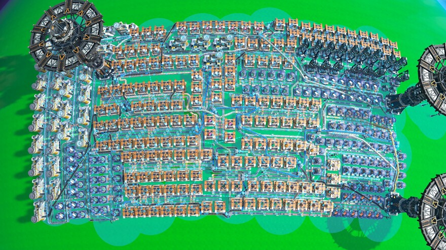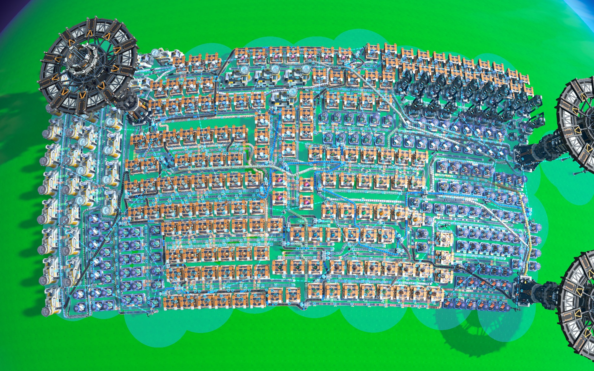 Uses rare ores: kimberlite, sulfur and organic crystals. Towers are outside to belt the ores if convenient. is placeable in most orientations in equatorial region. Makes just enough mk3 proliferator - when starting let it accumulate and propagate through the belts. Makes fusion cells - leech for easy energy to travel to tap the rares. Use matching green science BP for warpers and easier logistics. Production chain.