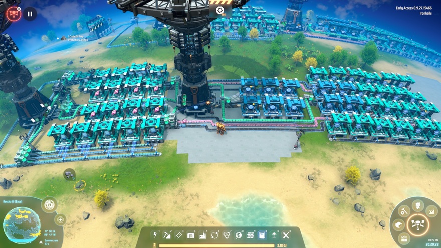 A complex that creates Quantum Chip and the required Casymir Crystal, Titanium Glass, and Plane Filter. Very useful when you need those first few Quantum Chip when you first unlock Green science to get things flowing. The right tower imports all required resources except water - since this will be used mainly on the original planet you should have plenty of water nearby to transport directly. 4 water pumps are enough. The center tower will provide the Quantum Chip & leftover Planes Filter (can be used to create other buildings)